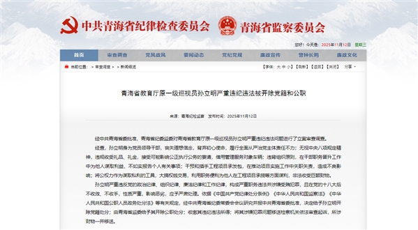 据青海省纪委监委消息,经中共青海省委批准,青海省纪委监委对青海省教育厅原一级巡视员孙立明严重违纪违法问题进行了立案审查调查。