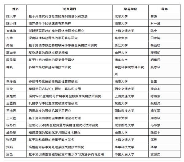2025年度“CCF博士学位论文激励计划”初评(第一轮)入围名单如下: