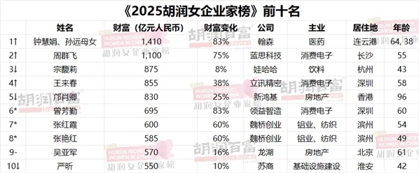2025胡润女企业家榜发布,首富来自生命健康领域