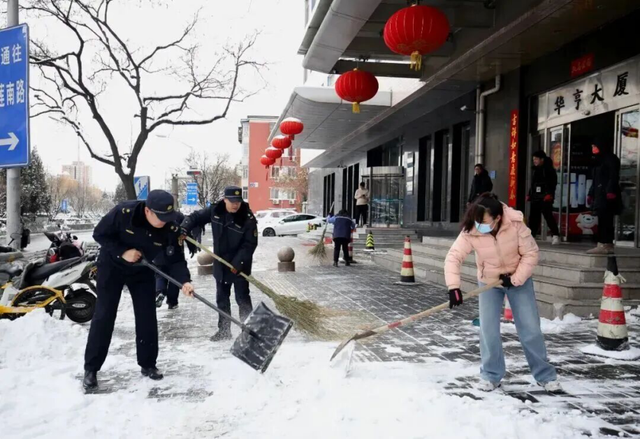 北京市西城区工作人员正在扫雪铲冰。北京发布公众号图