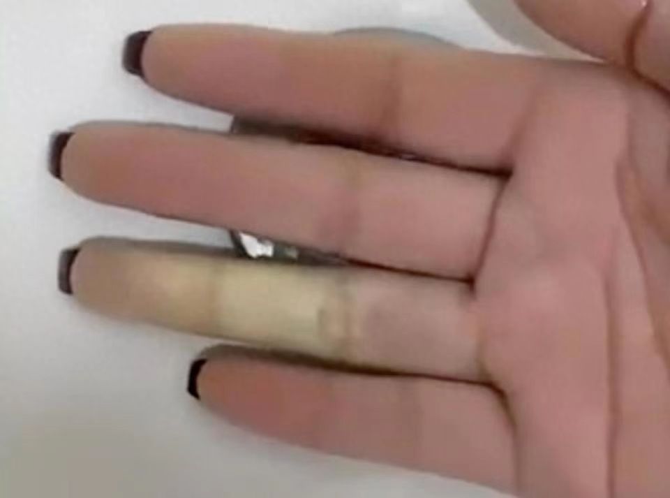 浙江一女子受冷后手指突然变惨白。大象新闻图