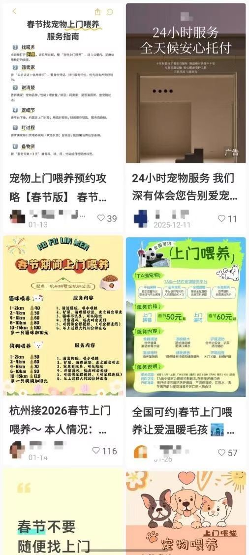 春节将至,社交媒体上有关春节宠物服务的话题持续升温。