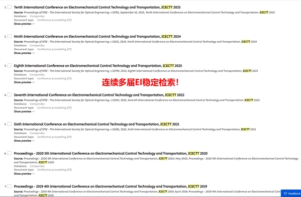 会议自2015年起,先后成功举办了十届会议,目前历届会议文章已出版见刊并完成IEEE、EI核心等数据库的收录检索。会议已连续多届EI核心稳定检索!【查看详情】