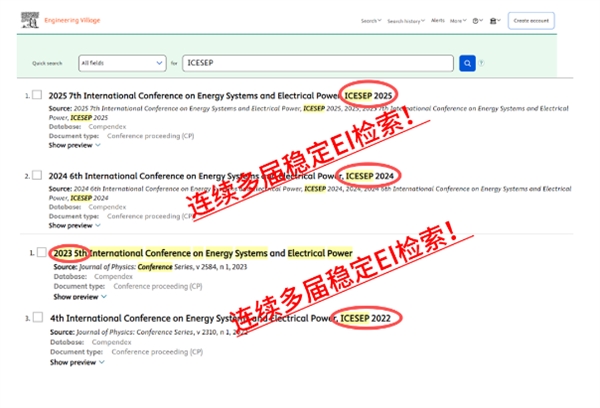 连续多届稳定EI检索,ICESEP 2025会后不到3个月EI检索!