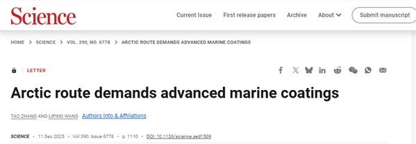 《科学》刊发宁波材料所北极航线海洋涂层快报 北极航线的战略价值与潜在经济效益巨大,其可持续运行依托于高性能海洋防护材料的突破。 |