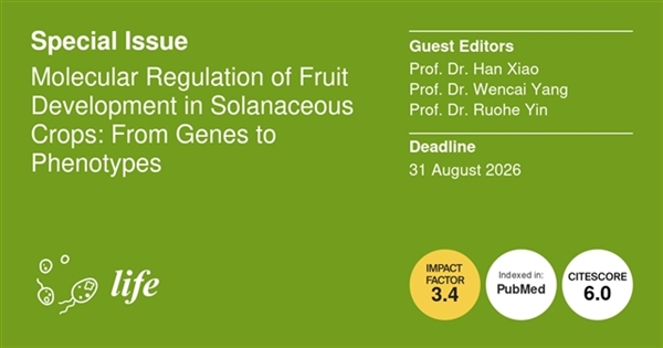 在分子生物学技术飞速发展、多组学研究深度融合的当下,植物科学正朝着精准解析生命机制、赋能农业可持续发展的方向加速迈进。Life 期刊精选 5 个植物科学领域前沿特刊,聚焦茄科作物发育调控、多组学整合、转录后调控、根系-土壤-微生物互作等关键方向,搭建从基础研究到实际应用的学术交流平台,为植物科学领域研究者提供优质的成果展示与分享渠道。