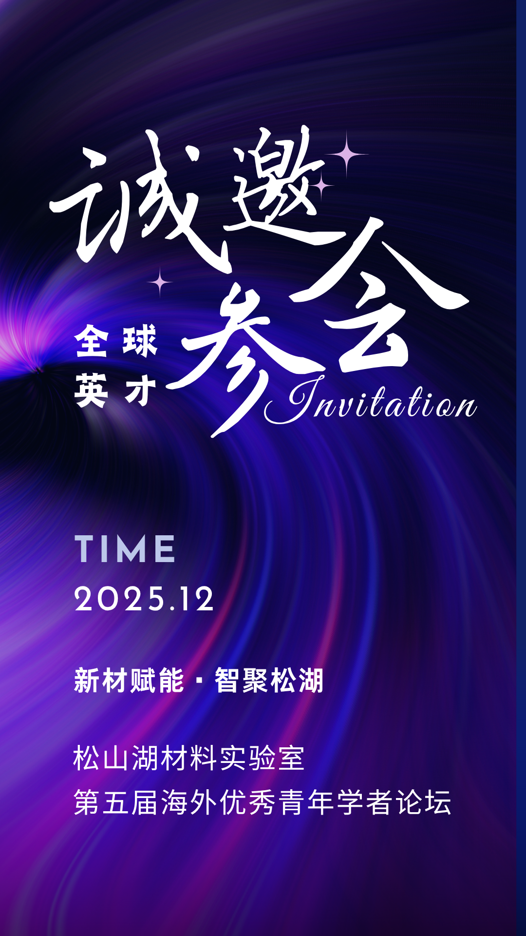 ①地点:广东.东莞.松山湖材料实验室②时间:2025年12月16日-18日(以邀请信实际通知为准)报名截止时间:11月27日专家函评阶段:11月28日-12月2日邀请函发放:12月3日-12月5日论坛报到:12月16日论坛开幕:12月17日参观交流:12月18日