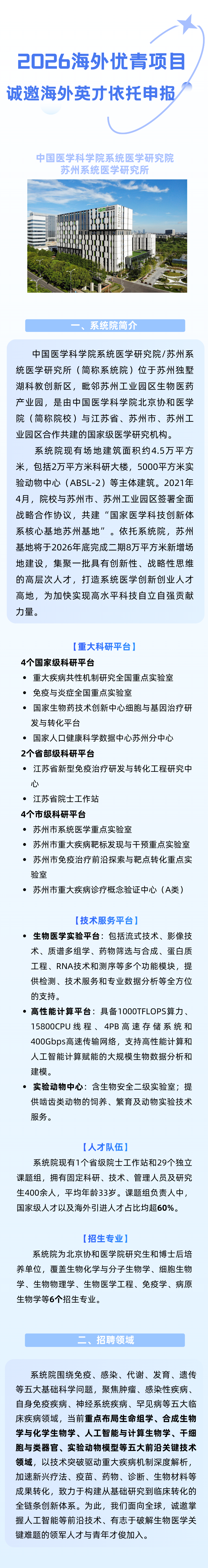 中国医学科学院系统医学研究院/苏州系统医学研究所诚邀海外英才申报2026海外优青项目